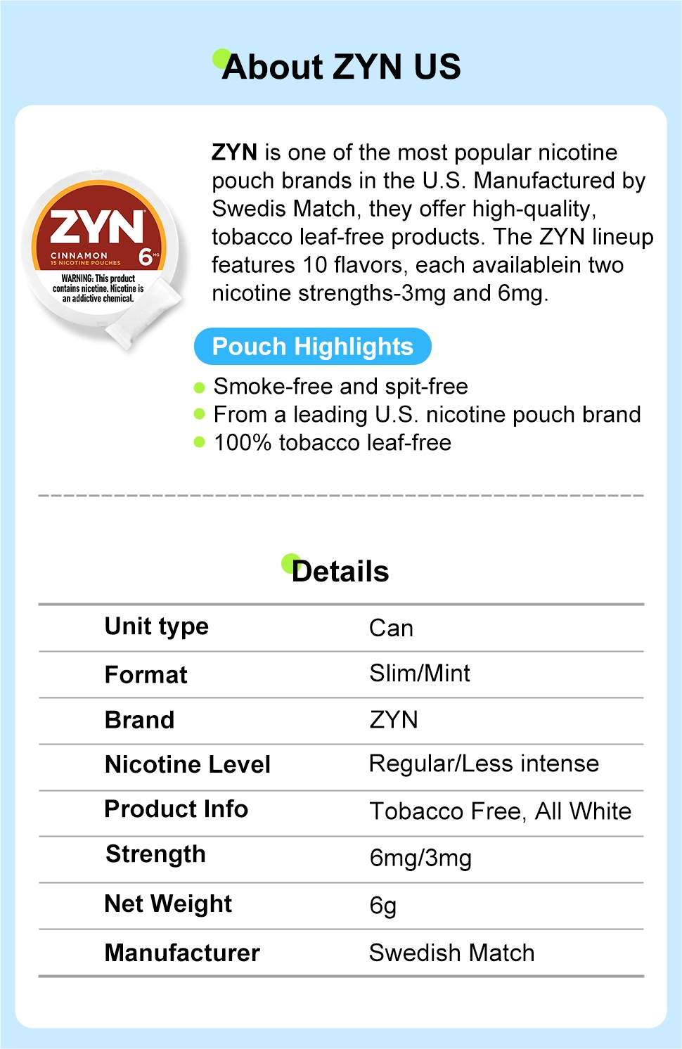ZYN 3mg, 6mg Pouches 10 Flavors